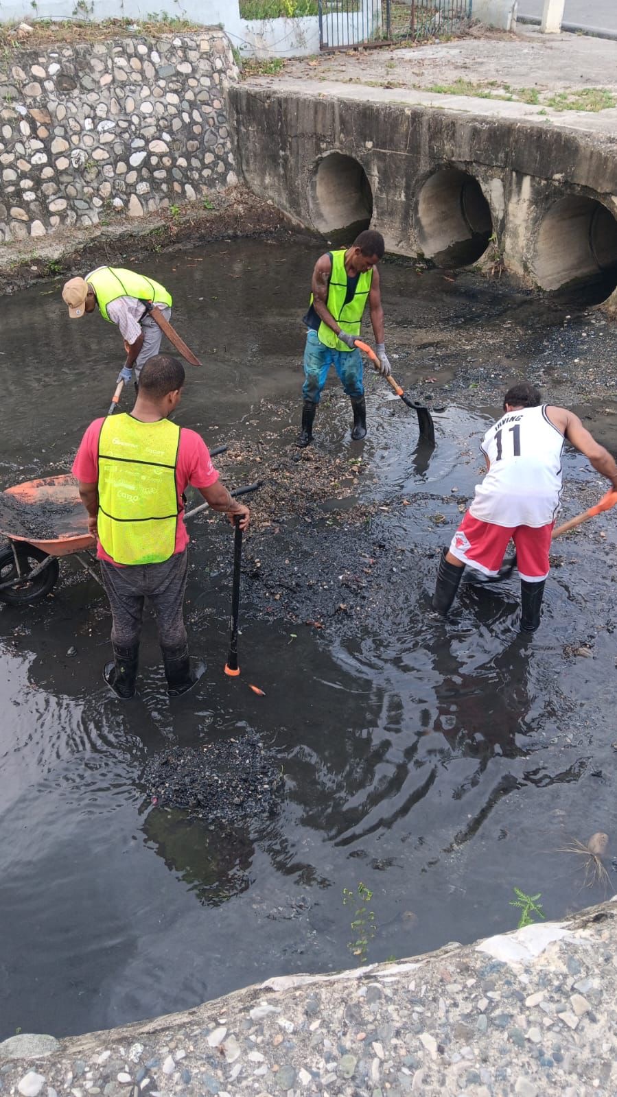 San Cristóbal.-Por disposición del alcalde Nelson de la Rosa, brigadas del ayuntamiento sanean la cuñada que cruza el barrio Los Americanos de este municipio hasta La Papelera.