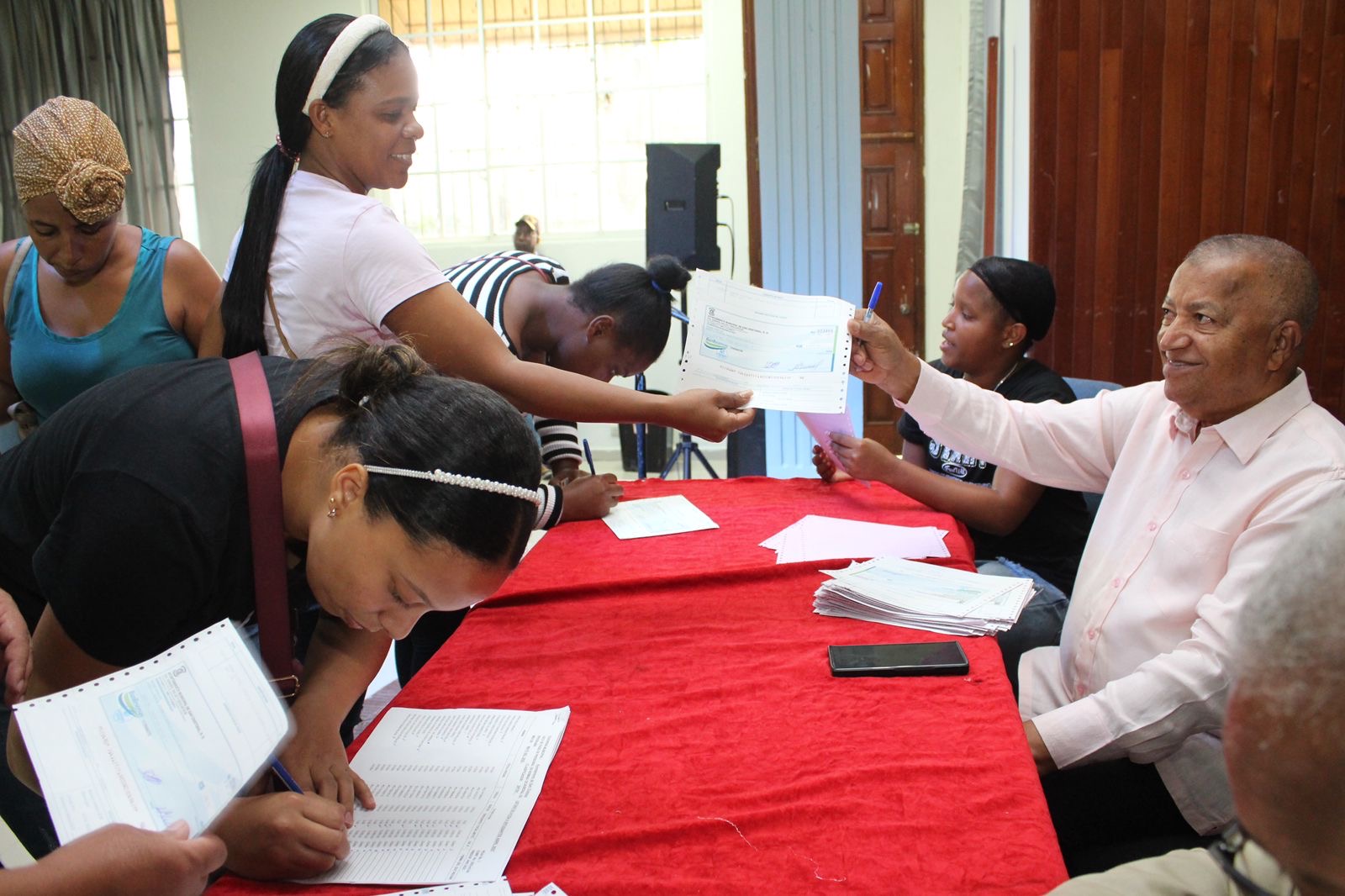 San Cristóbal, RD. – El alcalde Nelson de la Rosa continua las entregas de cheques a estudiar de diferentes Centros Educativos, para que puedan seguir realizando sus estudios sin ningún inconveniente.