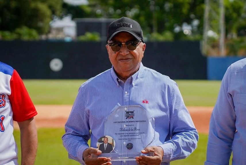 SAN CRISTÓBAL.- Por su apoyo al deporte El alcalde Nelson de la Rosa fue reconocido este sábado en la mañana por la Liga Nacional de Béisbol (LNB) en el estadio municipal de beisbol «Temístocles Metz».
