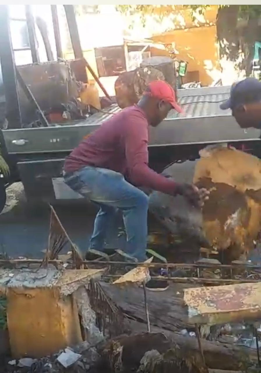 Los obreros de Espacios Públicos recogieron un tronco de árbol que llevaba varios años obstaculizando la acera y parte de la calle, en el sector Villa Valdez.