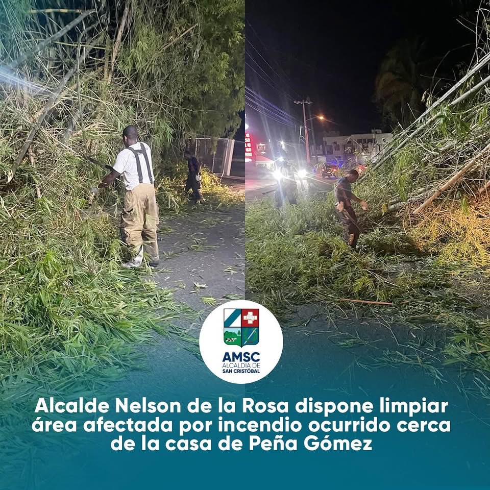San Cristóbal, RD. – El alcalde de San Cristóbal, Nelson de la Rosa, dispuso de inmediato la limpieza del área afectada por el incendio ocurrido en las cercanías de la casa del extinto líder político José Francisco Peña Gómez.