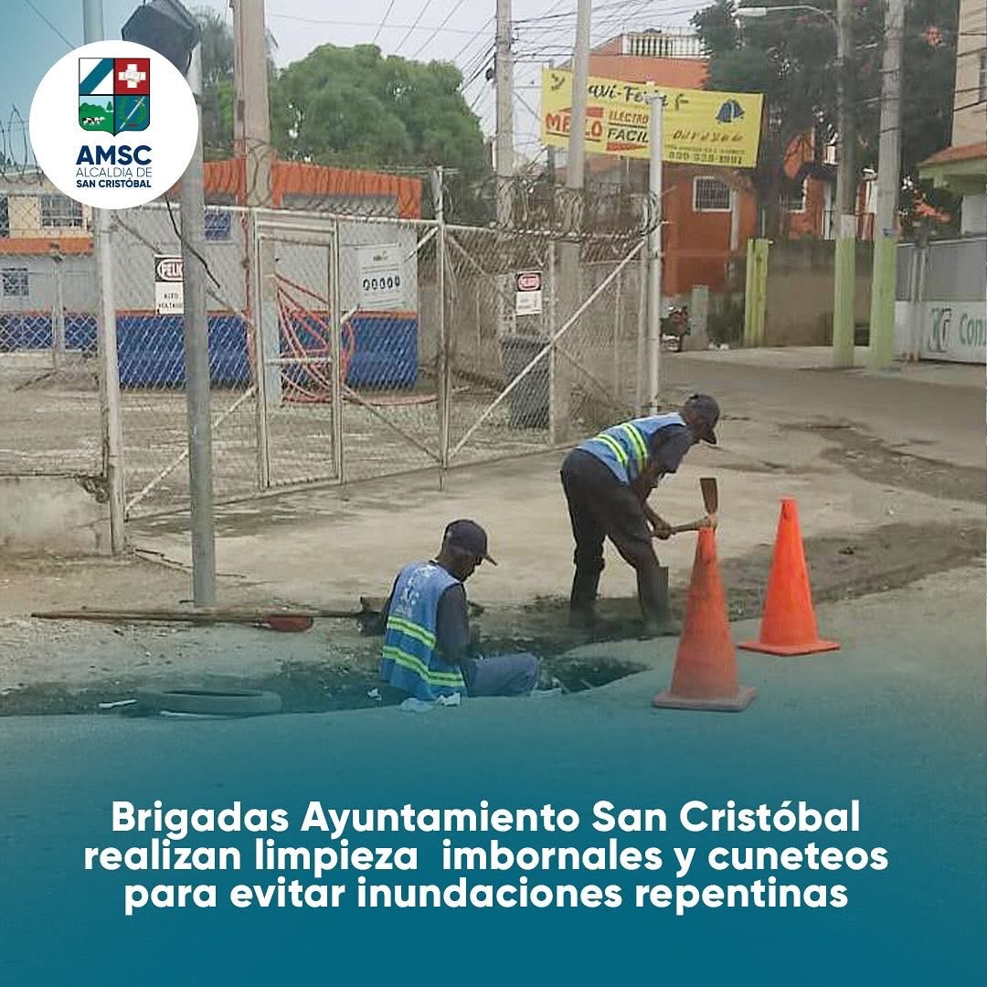 San Cristóbal, RD. – En las últimas 48 horas, brigadas de Obras Públicas Municipales han intensificado la limpieza de imbornales y cunetas en los sectores Madre Vieja Sur y La Guandulera.