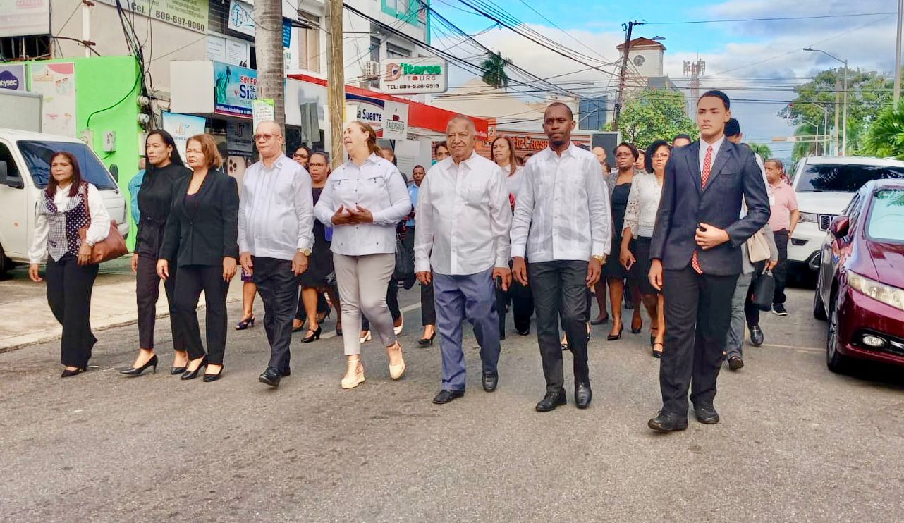 Luego autoridades y cientos de estudiantes desfilaron, muchos de ellos portando el lienzo tricolor dominicano desde la avenida Constitución hasta la calle Doctor Báez.