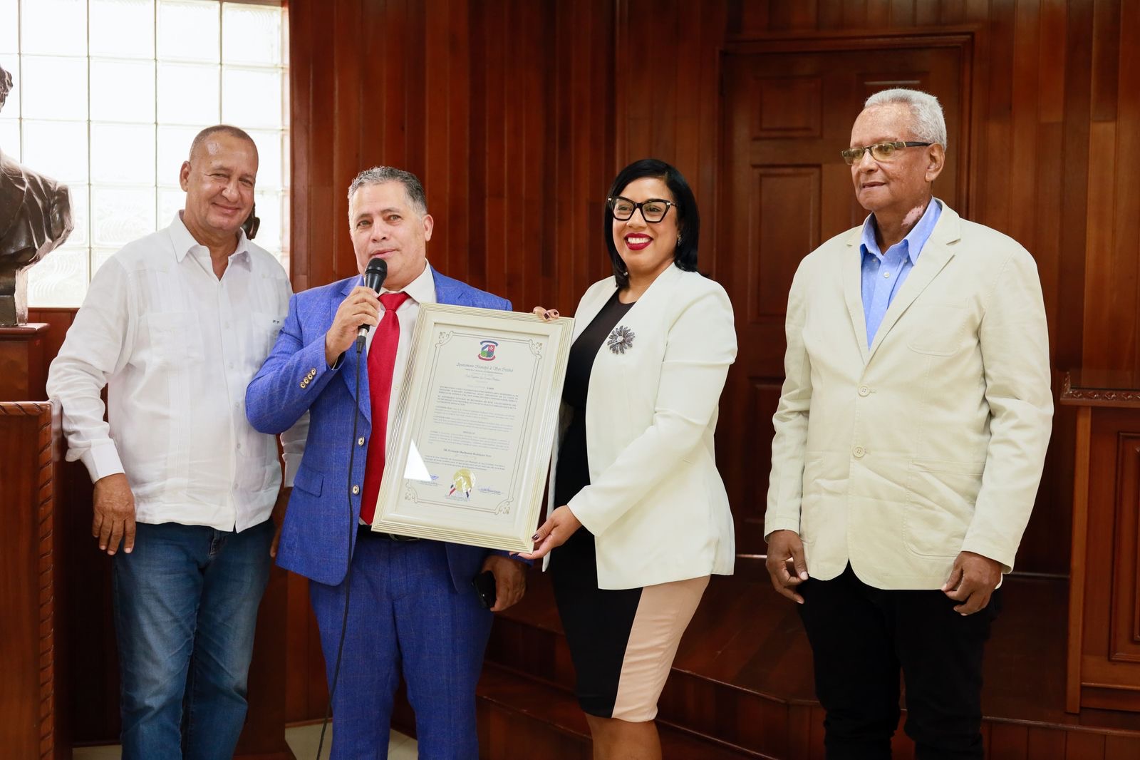 San Cristóbal.-En un solemne acto celebrado en la Sala Capitular Luis E. Perdomo, fue reconocido como hijo distinguido de San Cristóbal el empresario Fernando Radhames Rodríguez Soto, presidente de La Unión de Bodegueros de América, con sede en New York.