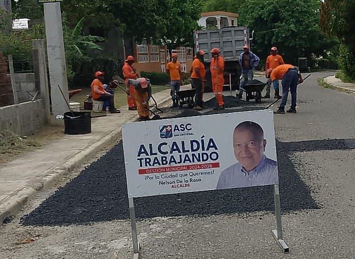 SAN CRISTÓBAL.- En alianza estratégica, brigadas del Ayuntamiento de San Cristóbal (AMSC) y el Ministerio de Obras Públicas y Comunicaciones (MOPC), continuaron bacheos y asfaltados de calles.