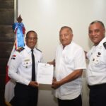 El alcalde de San Cristóbal, Nelson De La Rosa, juramenta al nuevo intendente de los Bomberos, coronel Francisco Besewerd Rosario