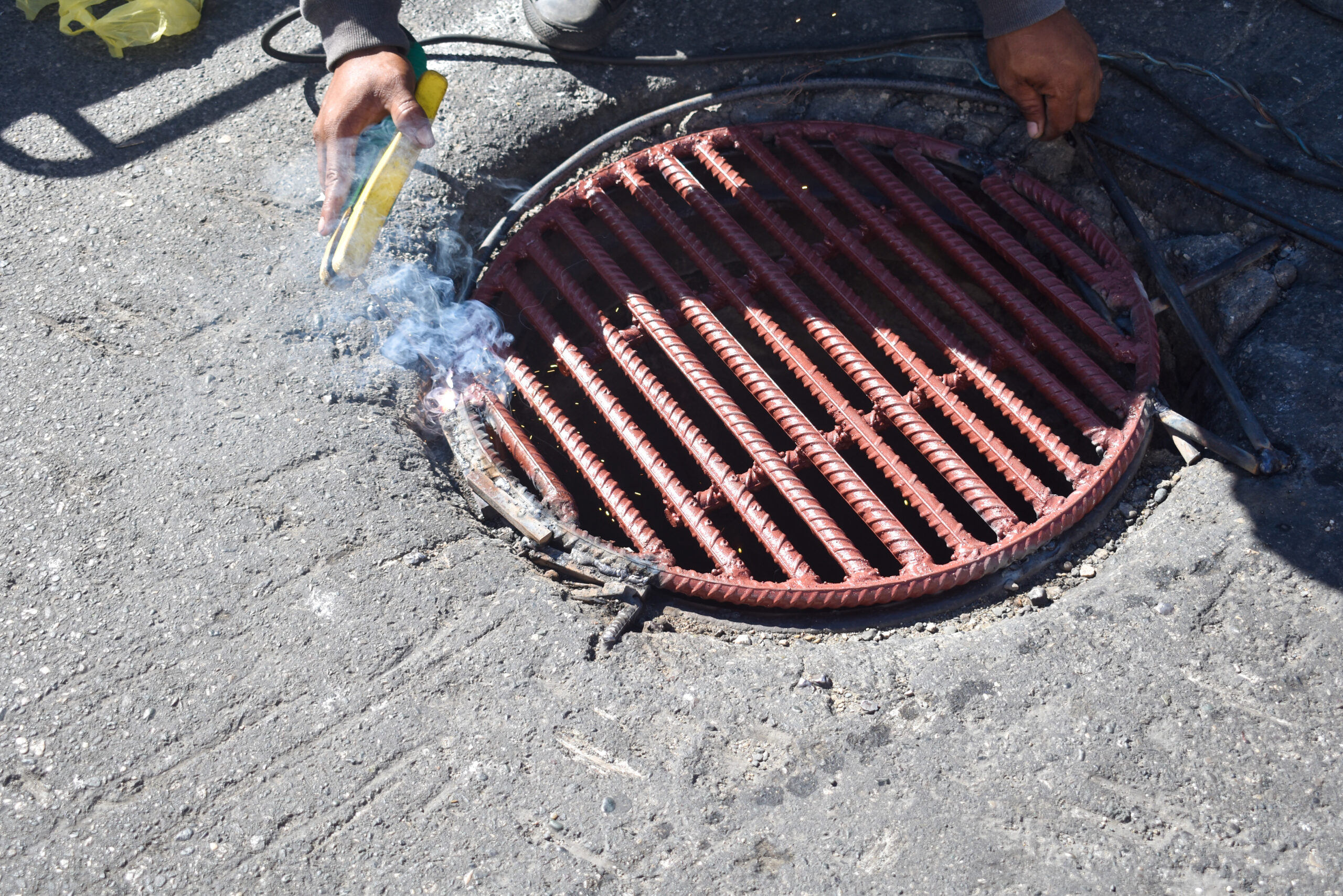SAN CRISTÓBAL.- Fue sellado con una tapa metálica un hueco de un registro de aguas cloacales ubicado en la intersección de la avenida María Trinidad Sánchez con General Cabral en el mismo centro histórico de la ciudad de San Cristóbal.