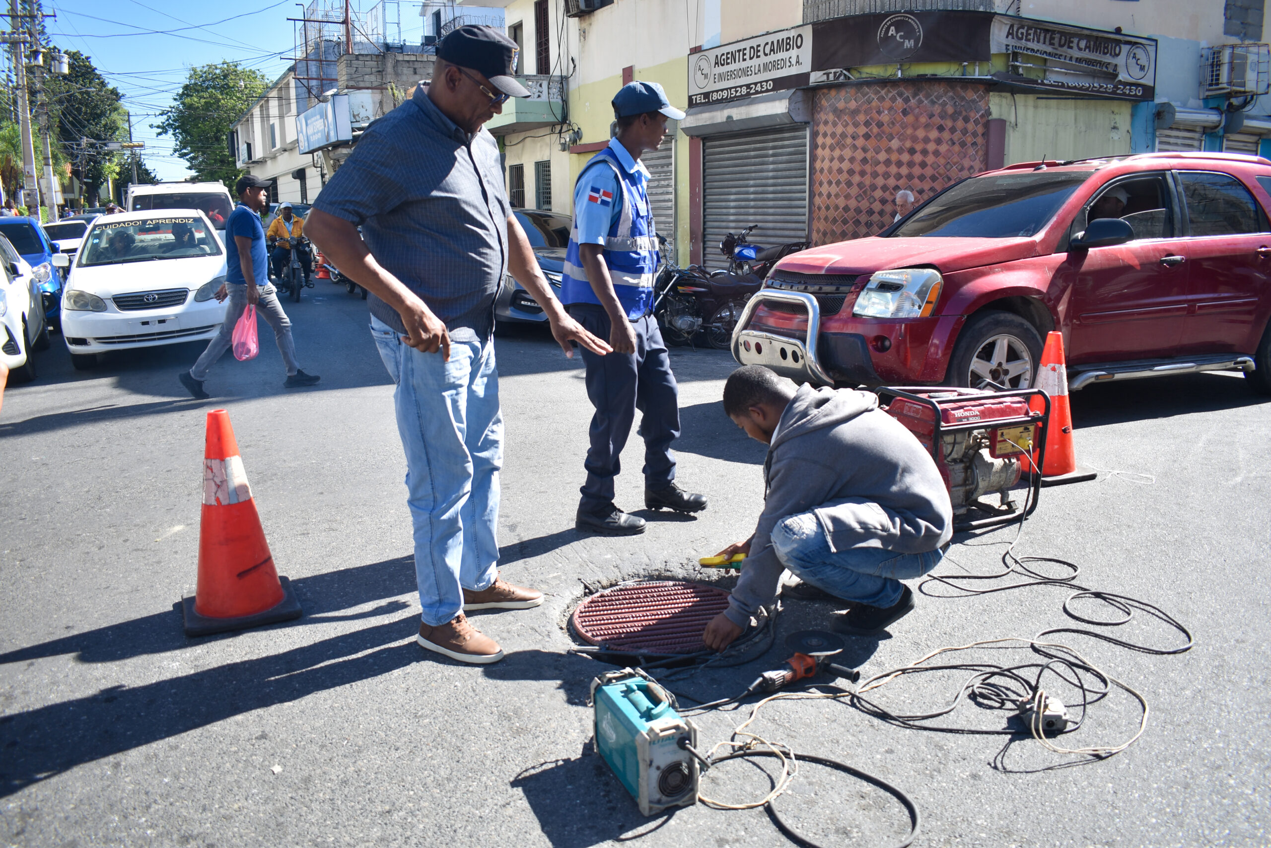SAN CRISTÓBAL.- Fue sellado con una tapa metálica un hueco de un registro de aguas cloacales ubicado en la intersección de la avenida María Trinidad Sánchez con General Cabral en el mismo centro histórico de la ciudad de San Cristóbal.