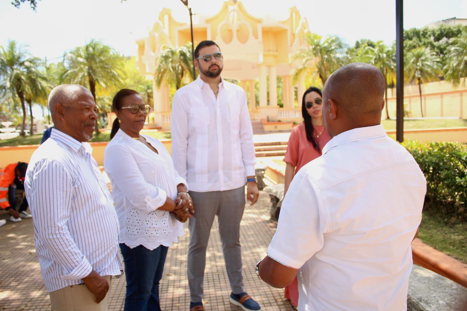 SAN CRISTÓBAL.- Una comisión del Ayuntamiento Municipal de San Cristóbal realizó una visita de supervisión, a la rehabilitación del parque «General Aniceto Martínez», en la Puerta de la Hacienda.