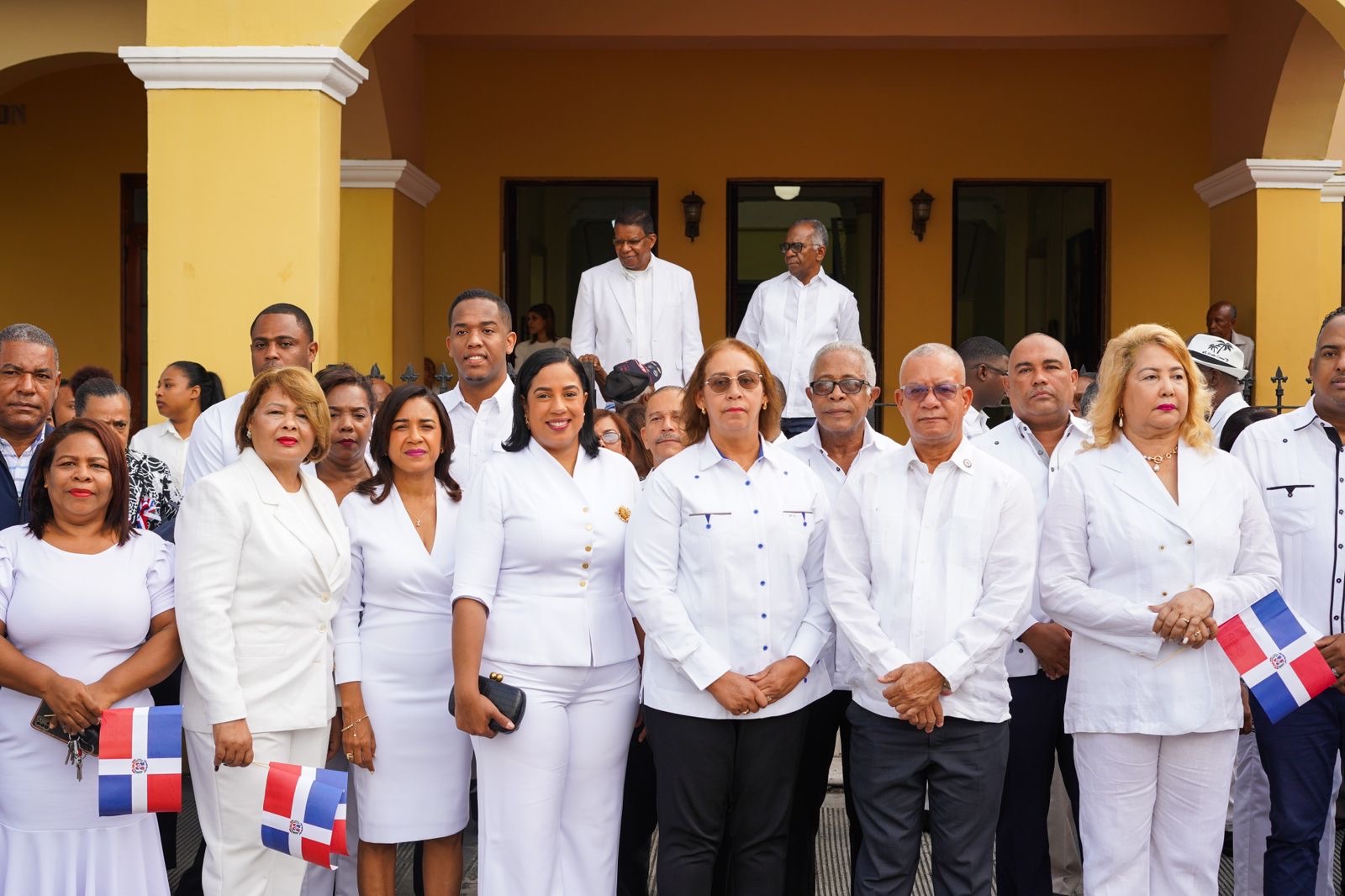 Las ceremonias oficiales iniciaron en la explanada de la Gobernación provincial con el izamiento de la bandera nacional dominicana al compás de las notas del canto patrio, el himno nacional interpretado por la banda municipal de música.