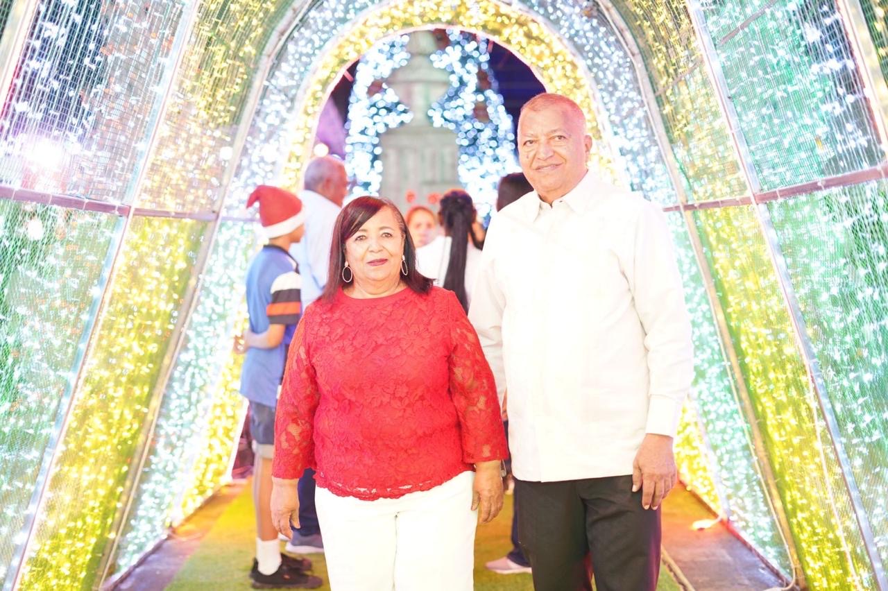 La impresionante obra de luces y colores en el Parque Colón en el centro histórico fue inaugurada por el anfitrión alcalde Nelson de la Rosa y el titular de la Dirección General de Proyectos Estratégicos y Especiales de la Presidencia, Roberto Ángel Salcedo.