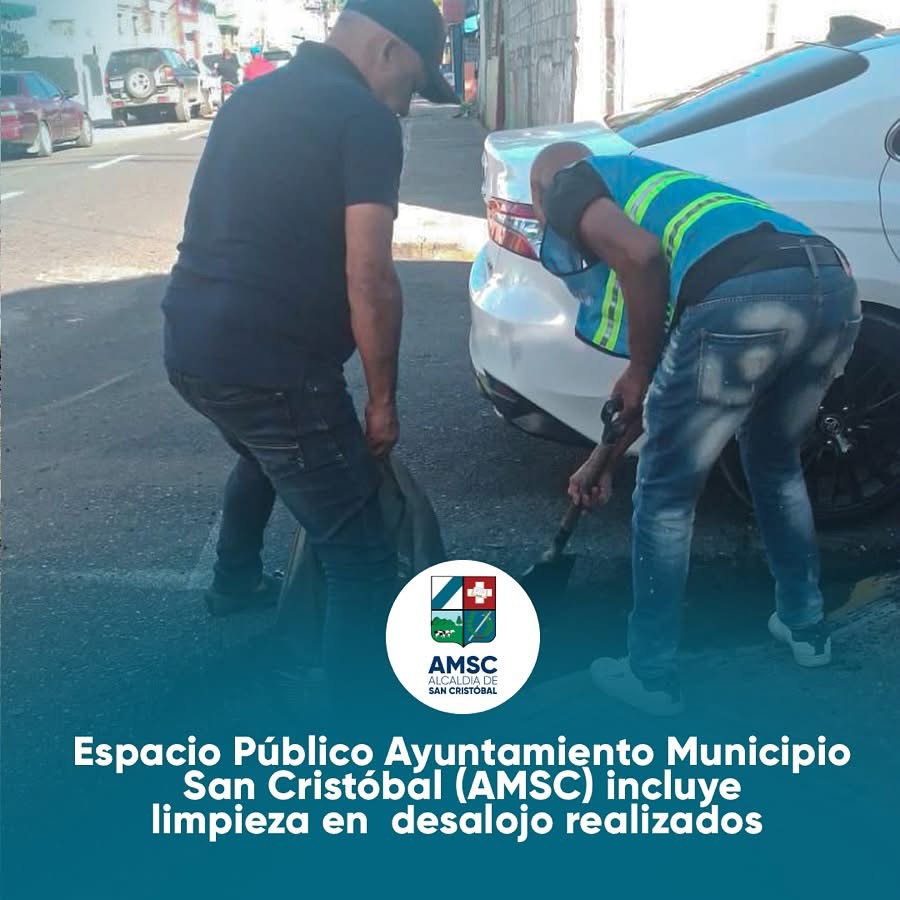 San Cristóbal.-Brigadas del Departamento de Espacio Público del Ayuntamiento del Municipio de San Cristóbal (AMSC) incluye en los desalojos que viene que vienen realizando en distintas vías públicas, la limpieza, con el objeto de dejar las aéreas totalmente higienizadas.