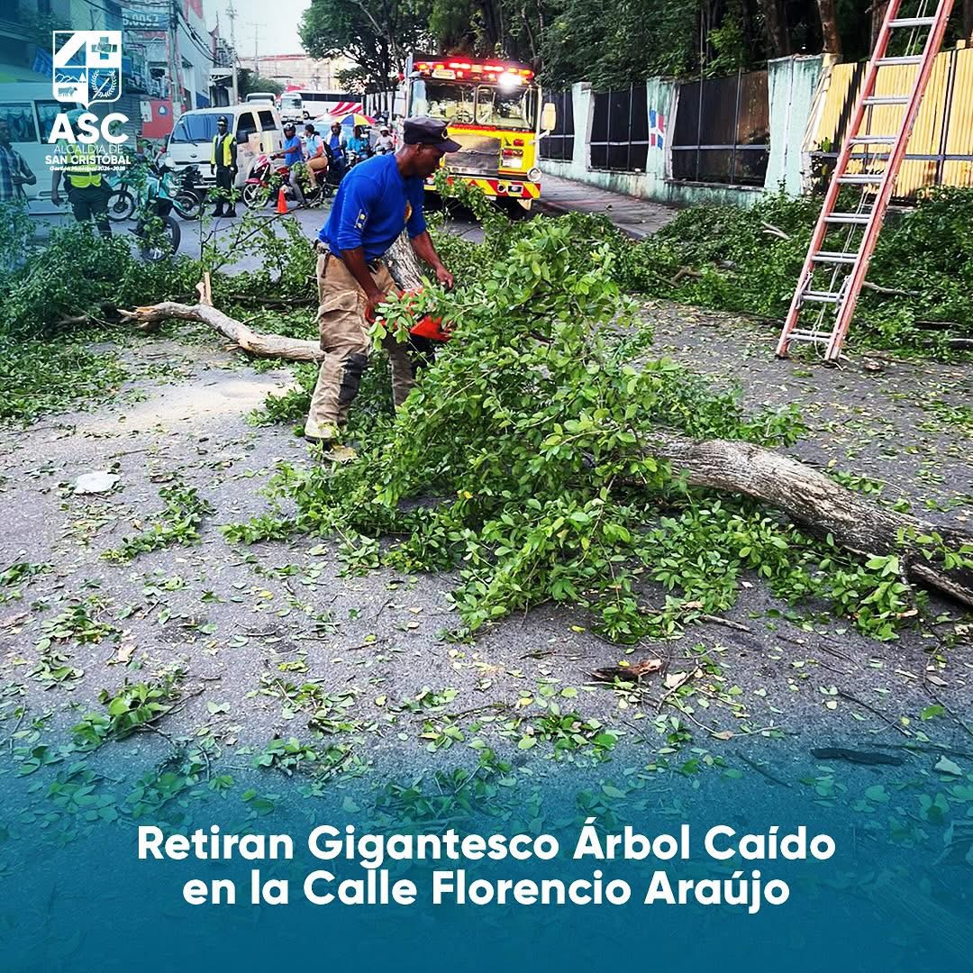 San Cristóbal, RD. – En la madrugada de este miércoles, un enorme árbol de la especie Gina colapsó en la calle Florencio Araújo, interrumpiendo el tránsito vehicular y peatonal.