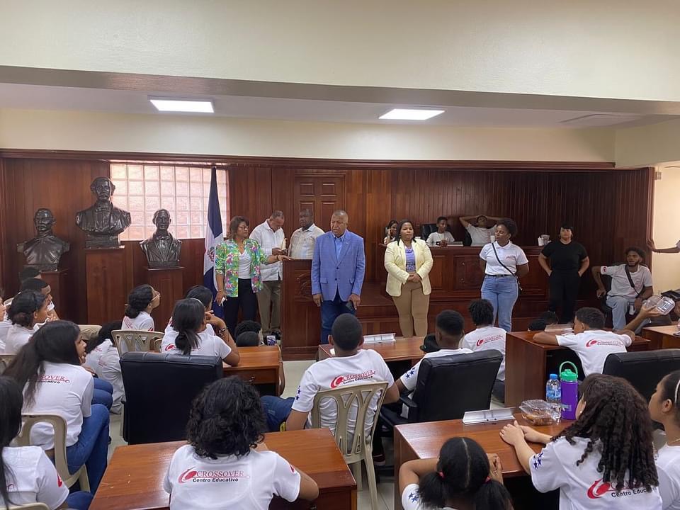 San Cristóbal. -Un grupo de estudiantes de la escuela Crossover del sector de Herrera en Santo Domingo visitaron este martes la Sala Capitular Luis E.Perdomo de este municipio cabecera.