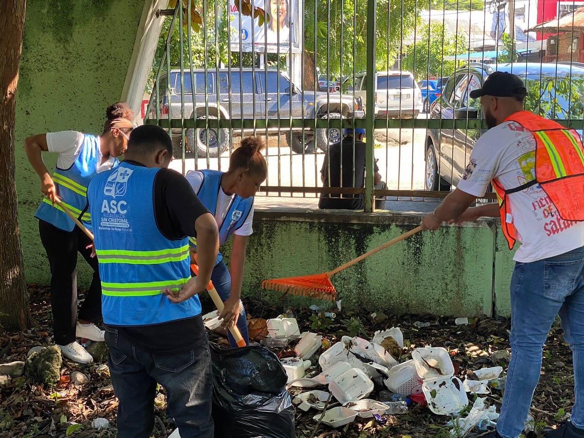 San Cristóbal, RD. – El Departamento de Protocolo del Ayuntamiento de San Cristóbal realizó esta mañana un pequeño operativo de limpieza en el Parque Recreativo, Eugenio de Jesús Marcano, antiguo Radhamés, junto a un grupo de estudiantes que están realizando una labor social en la institución.