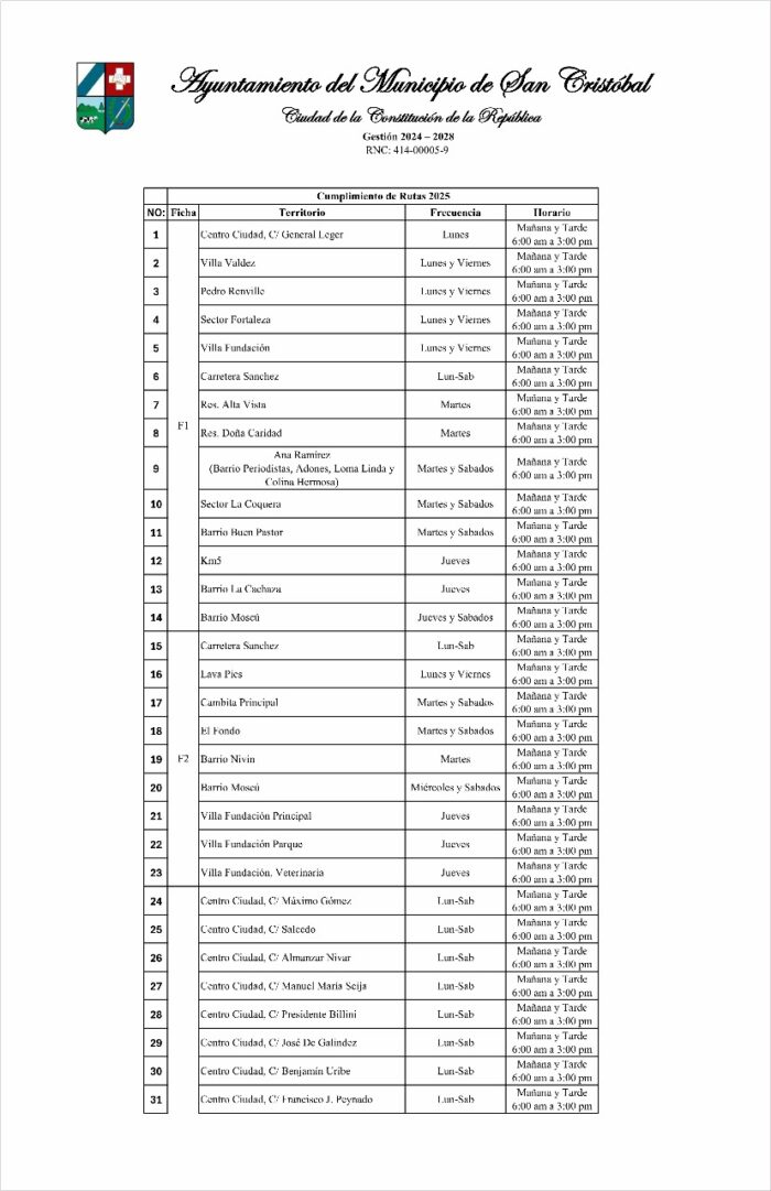 Nuevas Ruta de recolección de Residuos Sólidos San Cristóbal