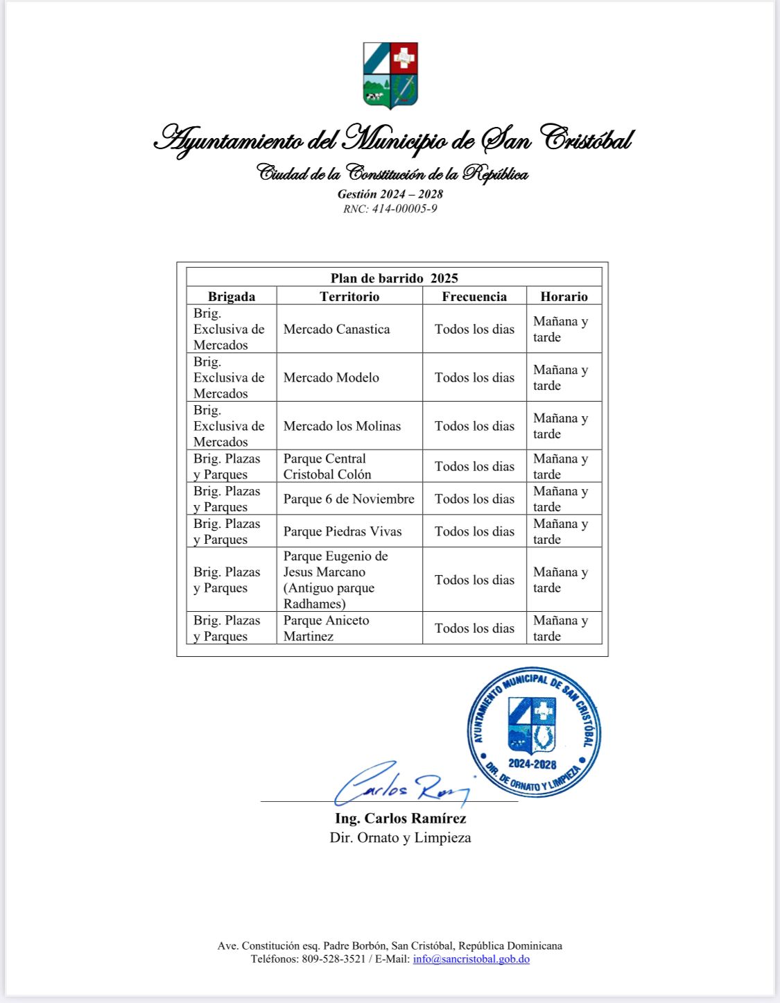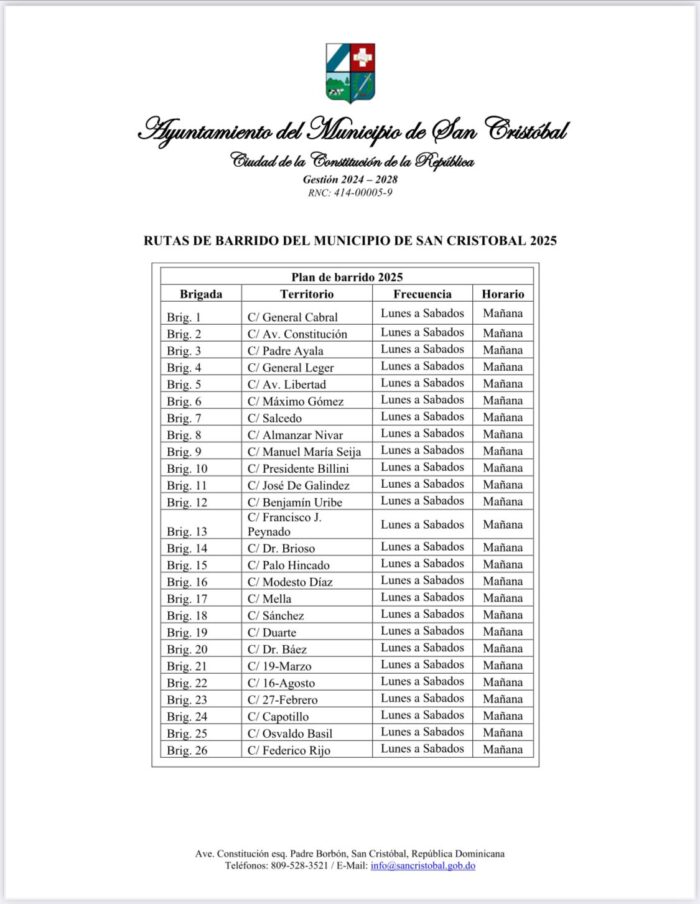 San Cristóbal, RD. – Estas son las nuevas rutas de recolección de Residuos Sólidos del Municipio de San Cristóbal, establecidas por la actual gestión que encabeza el alcalde Nelson de la Rosa.