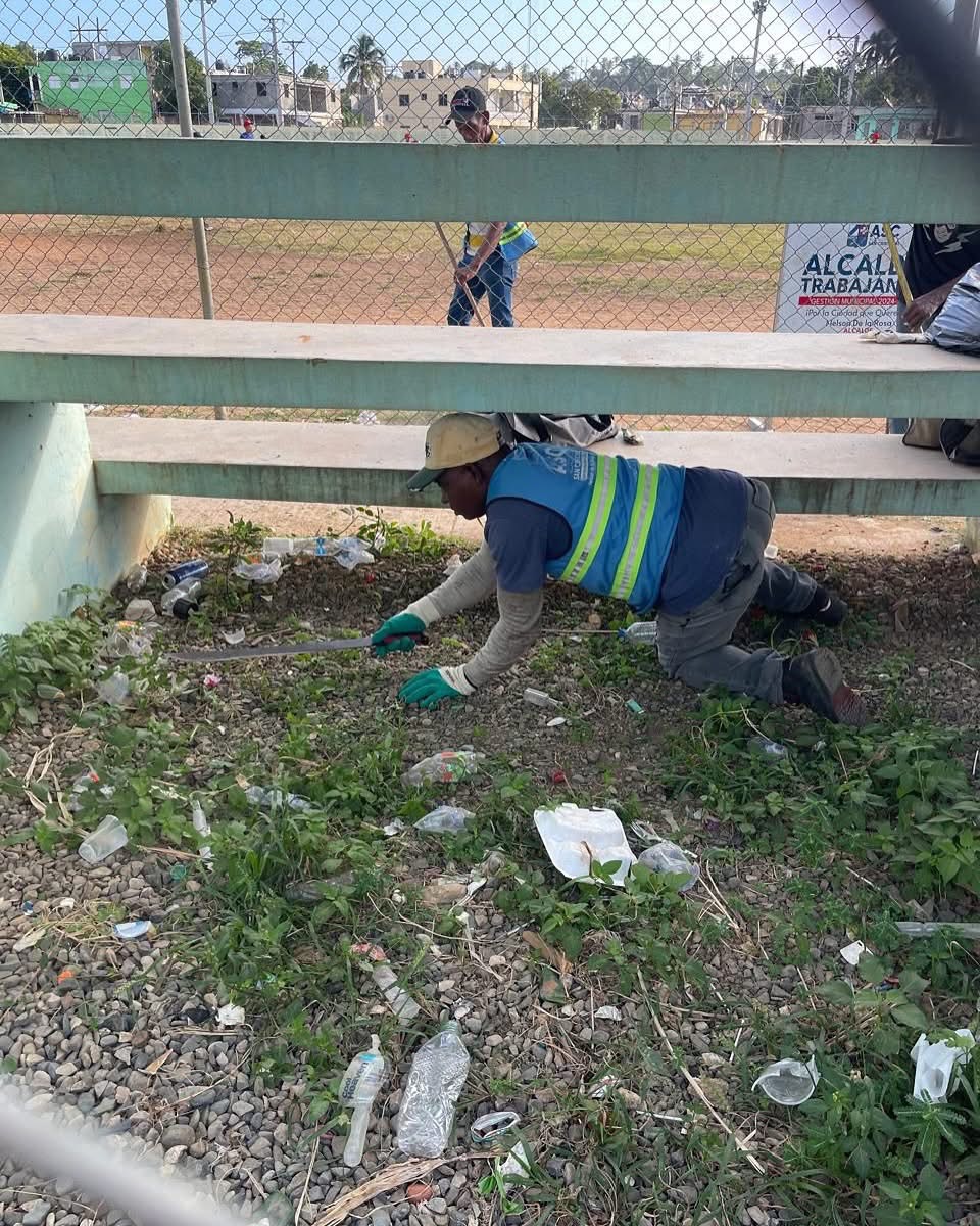 San Cristóbal, RD. – Por disposición del alcalde Nelson De La Rosa, esta mañana se realizaron labores de limpieza y chapeo en el play de Canastica, dejando todo listo para el inicio del Torneo de la Liga Pony este sábado.